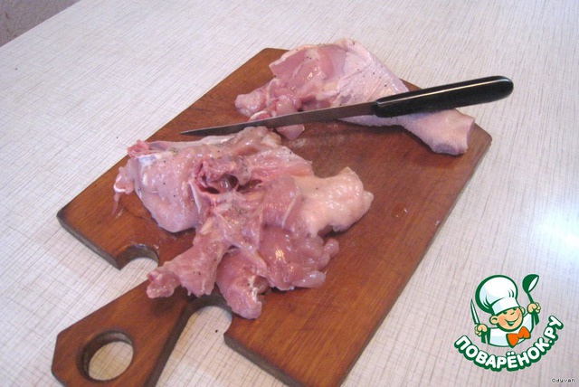 Обрабатываем курицу, т. е. моем, чистим и нарезаем на средние куски.