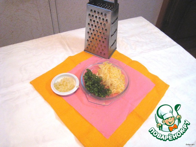 Режем зелень, трем сыр, измельчаем чеснок.