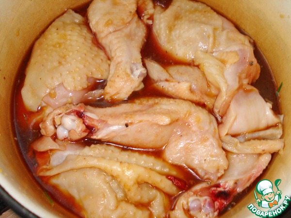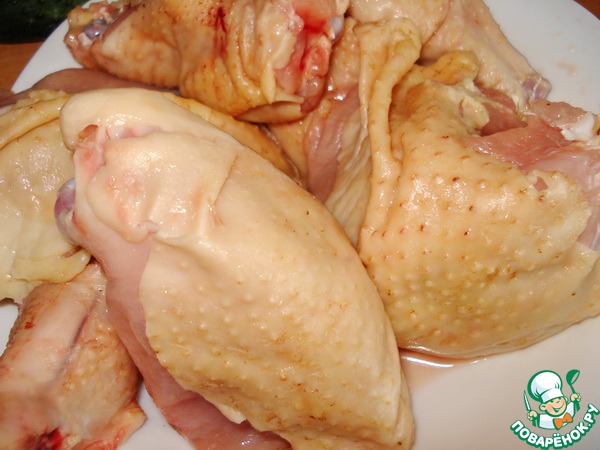 Курицу нарезать на кусочки (можно взять одни бедрышки)