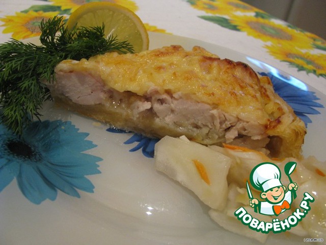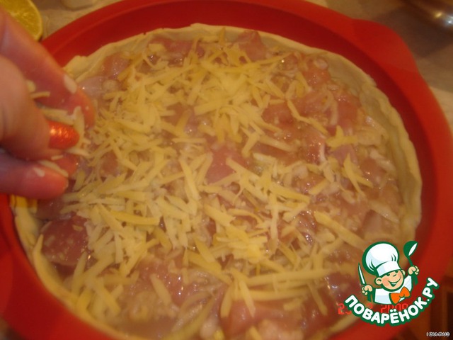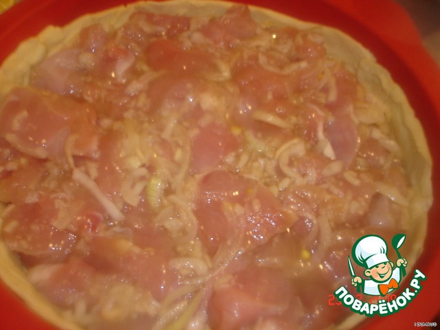 на тесто выложить маринованное филе