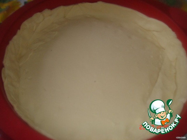 Тесто слегка раскатать и застелить им дно формы для выпекания, формируя бортики