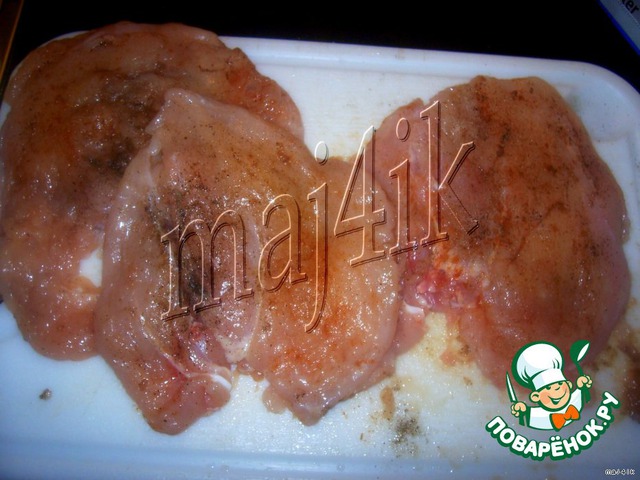 Аккуратно отбить с двух сторон в целофановом пакете.
