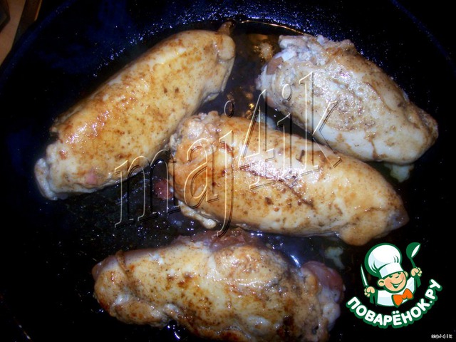 Минут за 10 до готовности обильно смазать грудки крем-фреш (или сметаной)