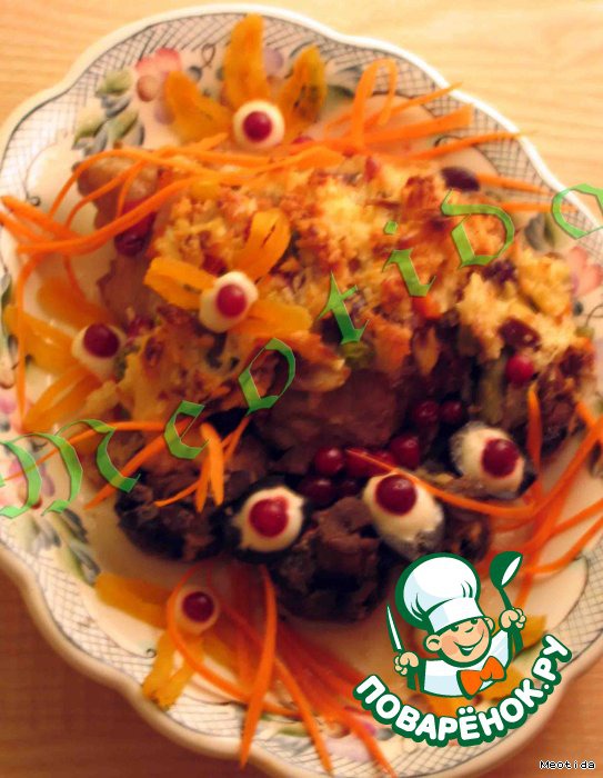 | вчера, возвращаясь вечером домой, вдруг почувствовала, как сердце защемило сладостных от воспоминаний о лете... о тех прекрасных теплых и солнечных денечках, которыми оно нас балует.. когда все вокруг все цветет.. зеленеет.. и воздух пропитан ароматом счастья.. так и хочется раскинуть руки и воспарить высоко-высоко в жаркое летнее небо и парить над землей, кружась в вихре медовых ароматов и солнечных лучей... вот и получилась у меня такая радостная и летняя курочка.. в клюквенно-грушевом маринаде с ароматными и пикантными специями.. с грибочками и яркими вкраплениями овощей. под сырно-кокосовой шапочкой... |
