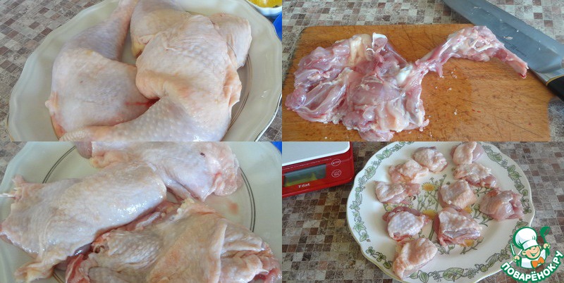 Поскольку нам нужно куриное филе, мы окорочка освободим от косточек. Из них мы потом когда-нибудь сварим хороший бульон.