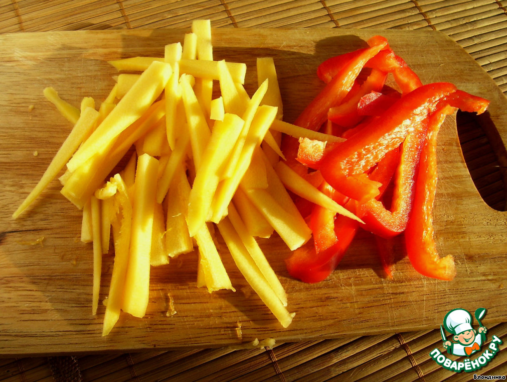 | Рецепт этого блюда был размещен на сайте в 2008 году пользователем Мышка-Катюша под названием "Рагу "Китайские сокровища"" и иллюстрирован мной в рамках акции "Раскраски". Долго описывать не буду. Просто. Быстро. Ярко. Диетично. |