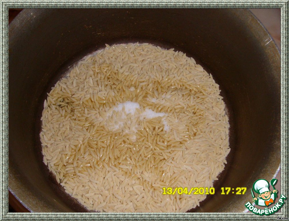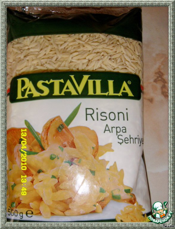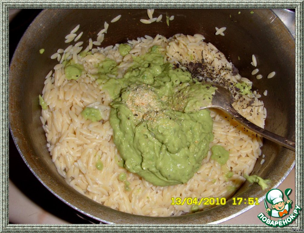 [b]Теперь гарнир "Зеленый рис". [/b] Заменила пастой в форме риса (орзо).