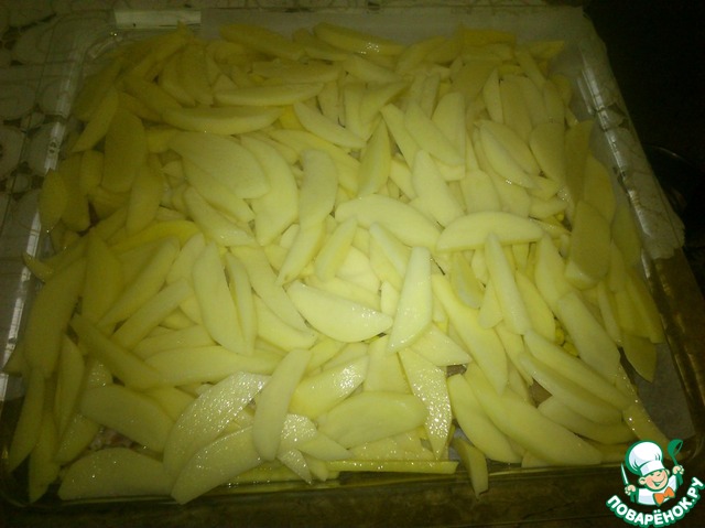 | Необычный вкус все той же картошечки с курицей, с небольшим сюрпризом. Это блюдо часто готовила моя мама, когда я была маленькой, просто на ужин, иногда и к приходу гостей. Сколько бы не было приготовлено на следующий день никогда не оставалось. Не судите очень строго, это мой первый рецепт на сайте. |