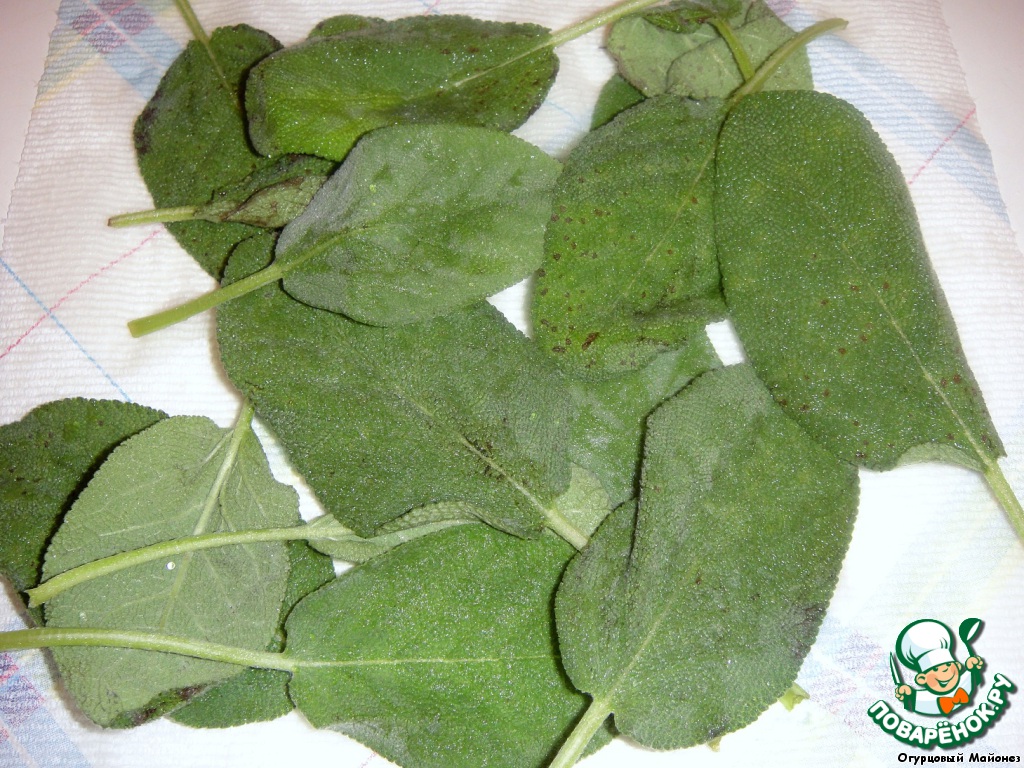 После чего вынимаем из маринада шалфей и оставляем его на отдельной тарелке.