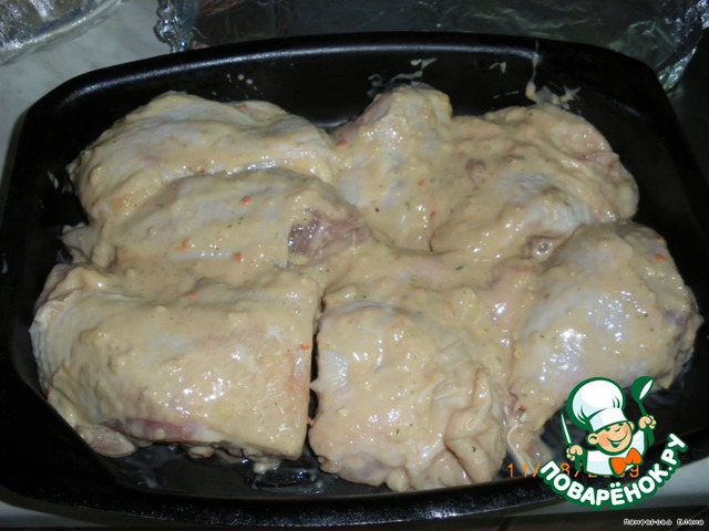 Хорошо перемешать и дать постоять мин.40, пропитаться окорочкам!