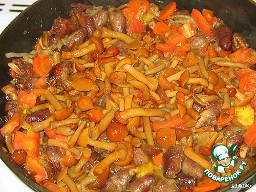 Грибы можно использовать любые. У меня были маринованные опята, их я и использовала.