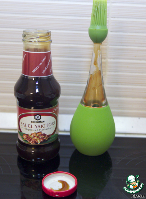 Разогрейте духовку до 220 С, положите курицу на плоский противень либо на застеленную фольгой решетку, готовьте 5-7 минут. Далее обильно смажьте куски курицы соусом Yakitori. Уменьшите температуру до 180 С и готовьте еще примерно 25 минут.