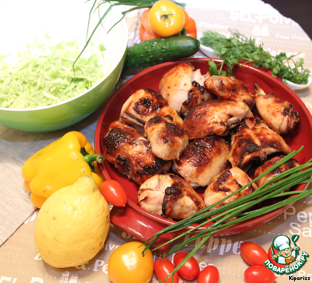 Курица глазированная в меду и горчице, под соусом Yakitori