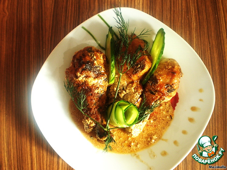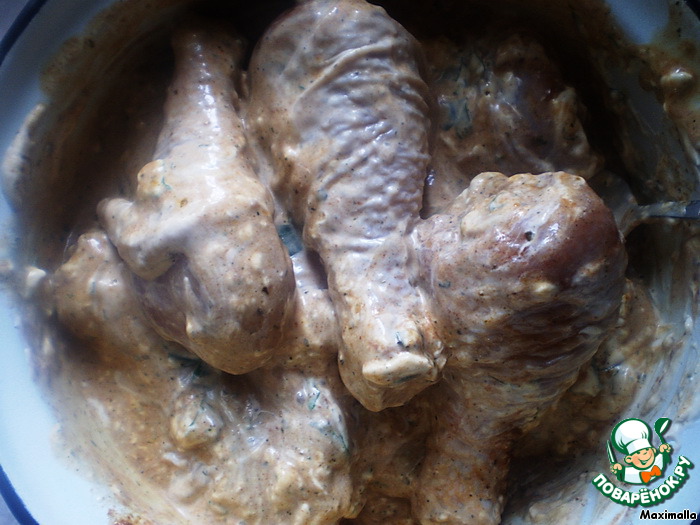 | Куриные голени с медовым маринадом, приготовленные в рукаве. Мед придает курице мягкости, чесночок - аромат, майонез - нежность, зелень, томат и специи - пикантность! Все перечисленные качества есть в этом блюде! Очень сочно и очень много подливки! |