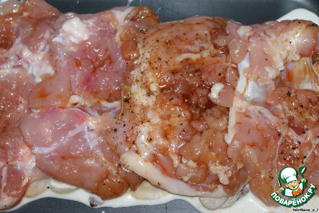 Куриное филе отбить с двух сторон (я использовала филе с бедра).