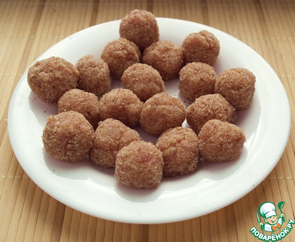 Сформировать маленькие фрикадельки, обвалять их в панировочных сухарях.