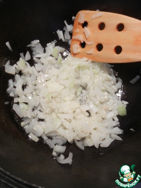 Затем пассеруем лук и чеснок в небольшом количестве оливкового масла.
