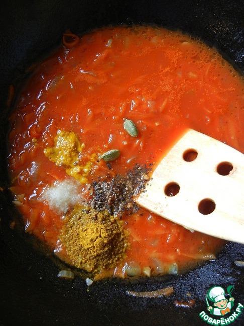Вливаем бульон и доводим до кипения. К бульону добавляем оставшиеся пряности и сушенные лимоны (мои лимоны, к сожалению, не успели прилететь к назначенному часу, поэтому готовила без них). Если Вам удастся раздобыть эту чудо-специю, будет здорово! У нас найти их очень сложно, а вот привезти из Турции-легко. Называется она-луми.