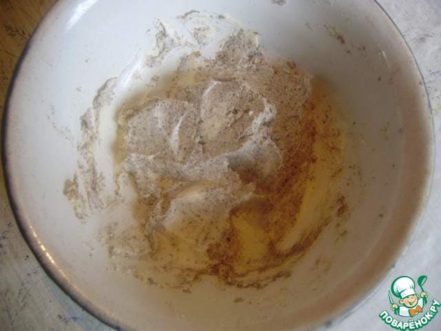 Делаем начинку. Для этого смешиваем 2 ст. л. сливочного масла, 1 ч. л. соли, щепотку молотого черного перца и 2 ч. л. молотого кориандра.