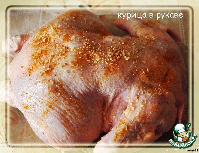 Курицу натираем специями и даем немного постоять (10 мин.)