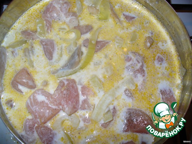 | Рецепт был взят года 3 назад из Инета и прижился у меня. Готовлю это блюдо из куриного филе или из голеней. Мне кажется, что это называется еще "фрикассе", но, возможно, я и ошибаюсь. |