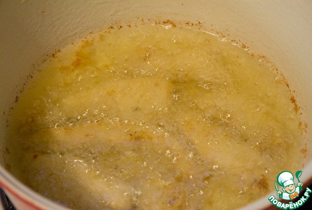 В посуде с высокими краями разогреть масло (высота 2 см). Обжарить порциями курицу.
