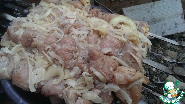 | Очень простой и вкусный рецепт, быстрого куриного шашлычка:) Надеюсь Вам понравиться! Я так была в восторге сочностью куриной грудки)) |