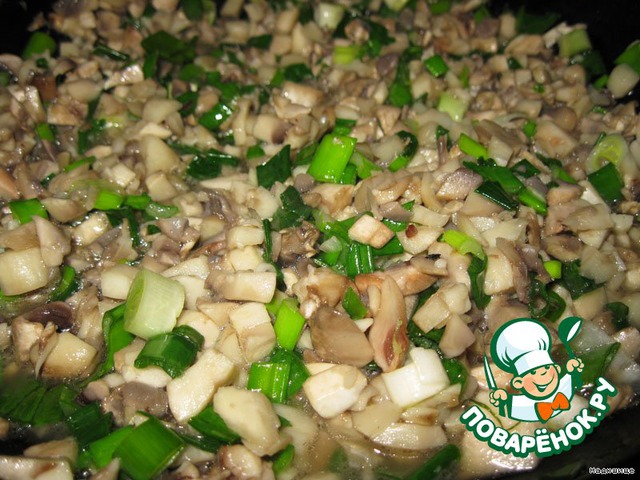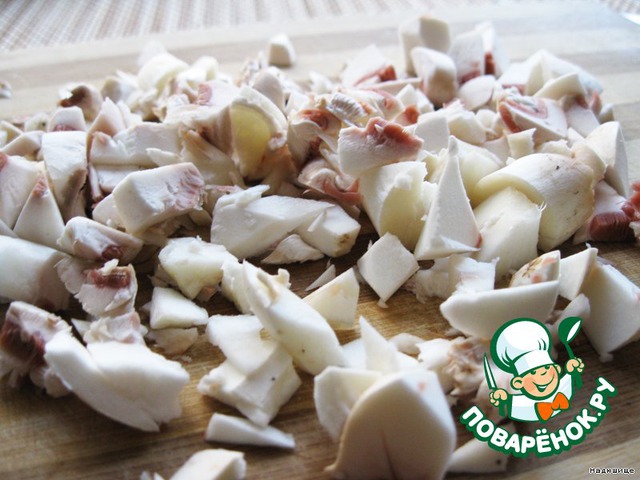 Теперь мелко режем шампиньоны