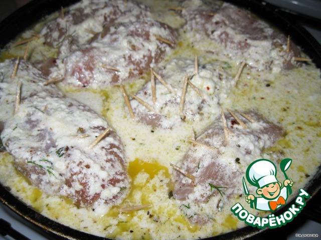 | Вкусное мясное блюдо. Рулетики тушеные в молочном соусе. |