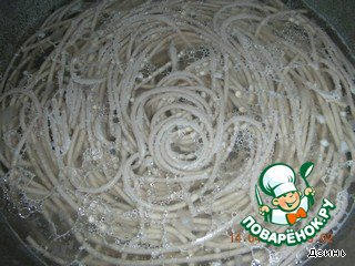 6. На гарнир у меня была японская гречневая лапша. В инструкции по приготовлению советуют варить еe 10 минут, но я варю меньше, у меня она почему-то варится быстрее))))))
