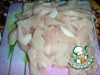 2. Нарезаем полосками куриную грудку