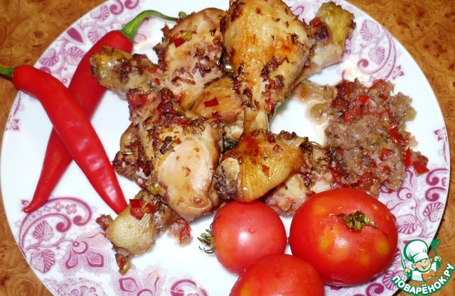 | "Алитас де пойо" (в переводе: пряные куриные крылышки, (почему голень вместо крылышек в первом шаге )) входит в группу блюд техасско-мексиканской кухни (Текс-Мекс), возникшей на границе двух стран и культур северных штатов Мексики и Юго-Запада США. Некоторые ингредиенты блюд кухни текс-мекс обычны для мексиканской кухни, но часто добавляются и ингредиенты, неизвестные в Мексике. Для кухни Текс-Мекс характерно частое использование плавленого сыра, мяса (особенно говядины), бобов и специй, в дополнение к мексиканским тортильям. Для Текс-Мекс обычна комбинация тарелок с несколькими блюдами, расположенных на одном большом подносе. Кроме того, текс-мекс заимствует ароматы пряностей из других кухонь, например, в нескольких рецептах из центральной Мексики используется зира (кумин), обычная в индийских блюдах. Алитас де пойо-блюдо не жгучее, а приятно-пряное с легкой кислинкой. Угощайтесь! Найдено в книге "Мексиканская кухня" |