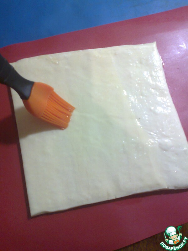 Тесто для штрудлей готовится из кефира, яйца, соли, соды и муки - не очень тугое... Так как я с тестом не дружу, то и не стала заморачиваться. Взяла упаковку обычного слоёного дрожжевого теста и положила размораживаться.
