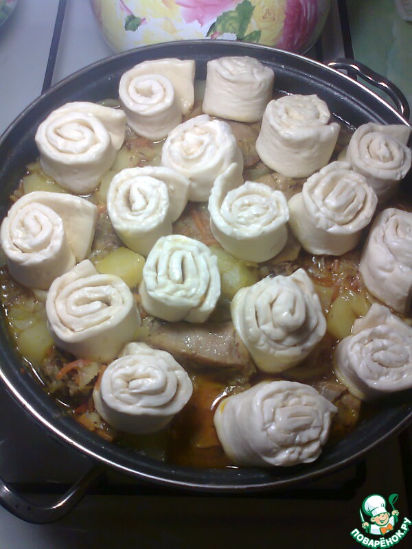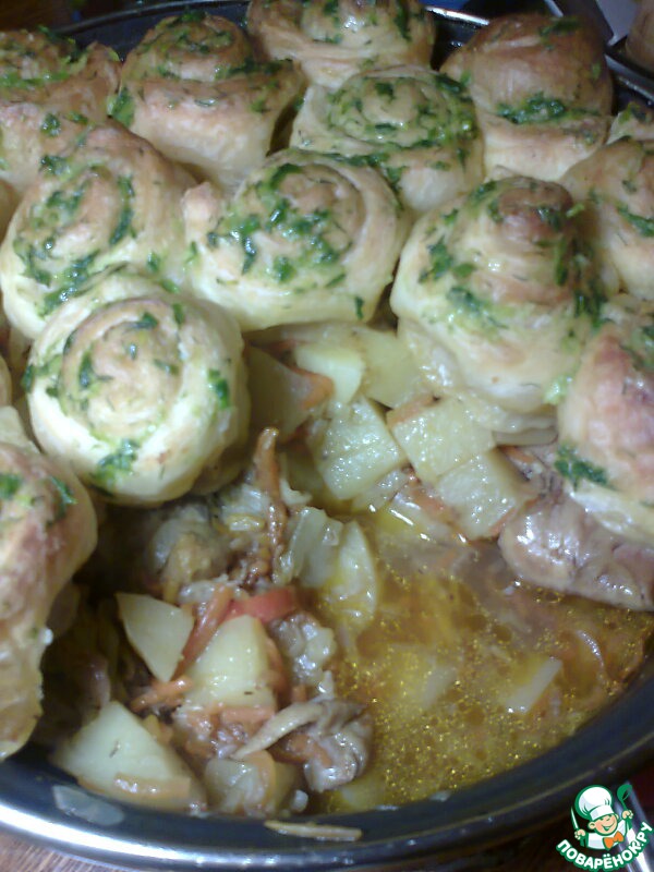 | Вообще, штрудли - это немецкое блюдо, и готовят его по-разному. Вот и я решила поэкспериментировать. Получилось почти по-украински, обалденное сытное блюдо! Эти воздушные завитки с чесночком!!! Мммм!!! Попробуйте! Всё очень просто и в тоже время так вкусно!!! |