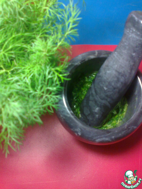 перетираем в ступке с солью, добавляем 2 ст. л. растительного масла и хорошо перемешиваем.