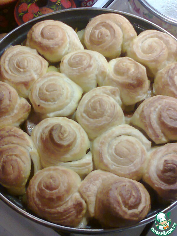 Выкладываем наши штрудли сверху и оправляем в разогретую до 200С духовку на 30 мин. (духовку желательно не открывать).