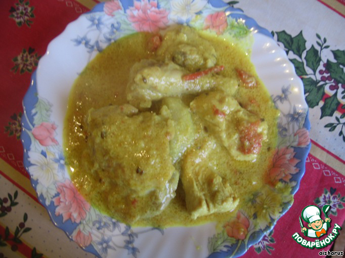| Корма - это тушеное мясо с йогуртом и специями. Известно, что корма возникла в Индостане в середине 16 века, когда это блюдо начало подаваться к столу правителей великих моголов, считается, что корма - это слияние персидской и индийской кухни. В наше время существует большое число разновидностей и вариантов этого блюда. Данный вариант широко распространен на севере Индии и Пакистана – Панджабе, главной особенностью его является добавление орехов и сливок. |