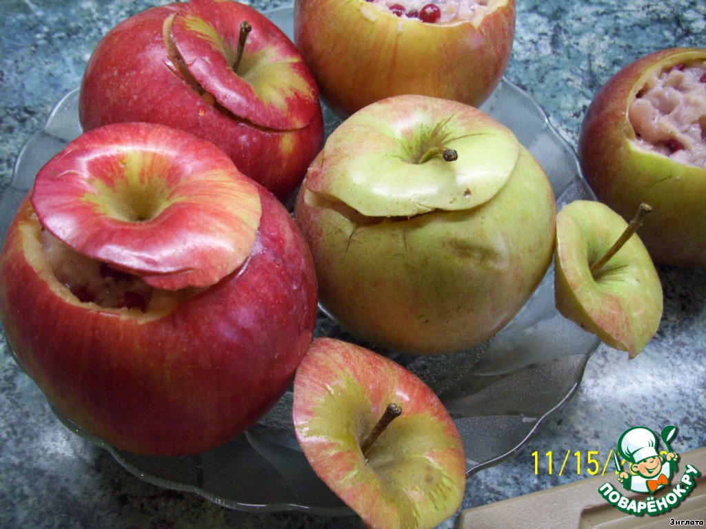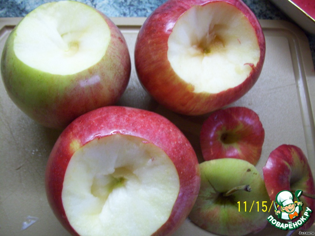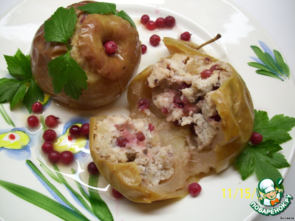 Начиняем наши яблочки куриной смесью. Любителям корицы могу посоветовать предварительно посыпать их этой пряностью изнутри