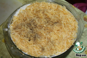 Собираем запеканку: слой - вареное мясо + специи для курицы.