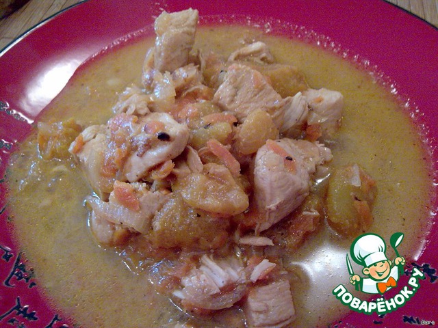 | Очень вкусное нежное куриное филе с абрикосами. Очень необычное и вкусное блюдо. ВНИМАНИЕ - блюдо по вкусу сладкое или сладко-острое. Точно также делается с персиками или ананасами. |