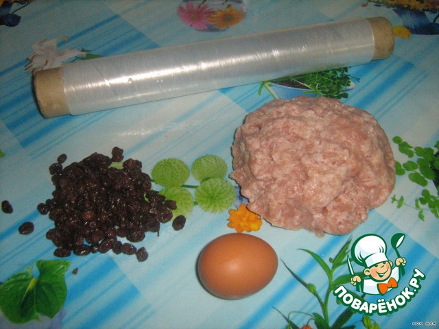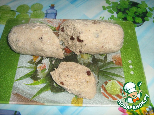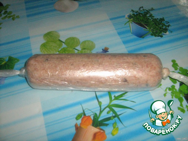 Все перемешиваем и выкладываем на плёнку и заворачиваем в колбаску.