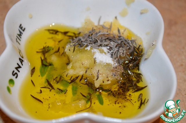 Смешиваем соль, перец, тимьян, чеснок и оливковое масло.