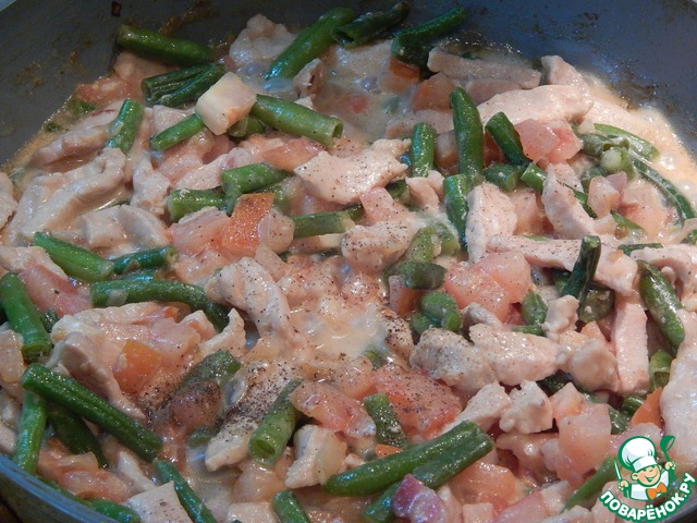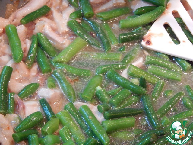 Затем добавляем пиво, бульон и фасоль. Тушим до готовности 15-20 минут.