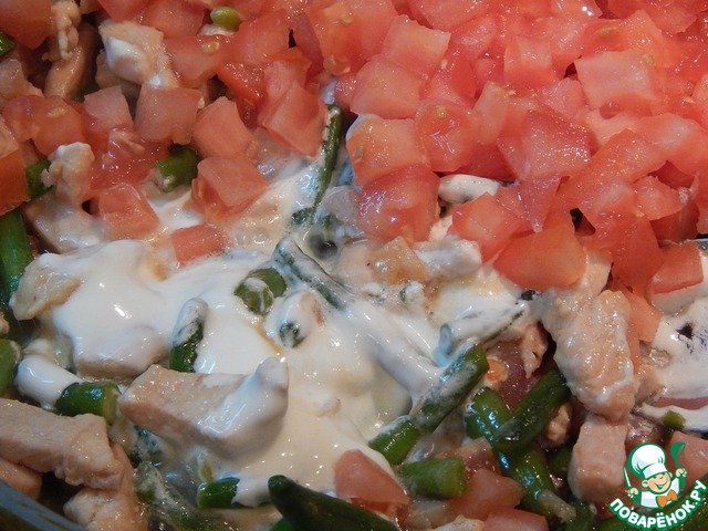 Добавляем сметану и порезанный кубиками помидор. Доводим до кипения, солим, перчим по вкусу.