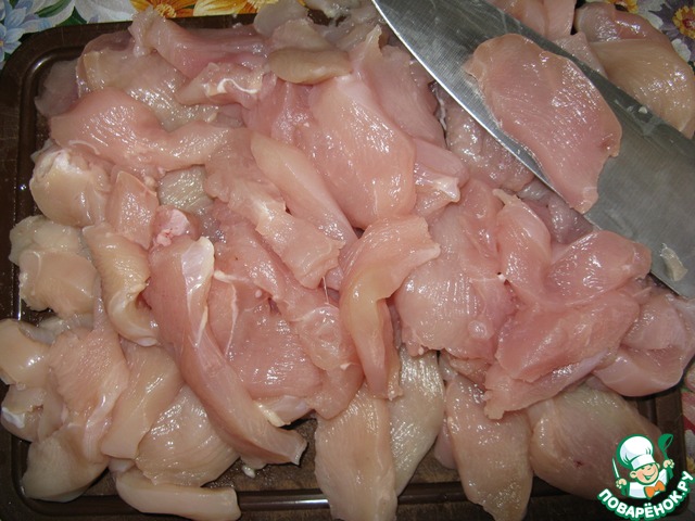 Филе порезать произвольно. Я порезала средними кусочками.