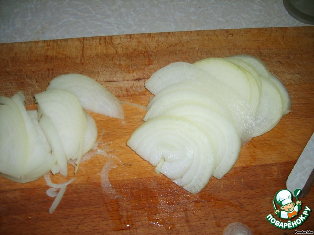 Нарезаем картофель и выкладываем в смазанный маслом противень