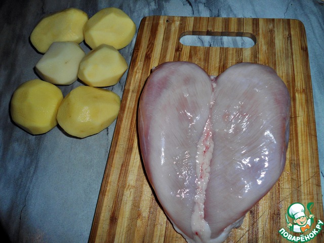 С куриной грудки снять кожу, удалить кость. Картофель очистить.
