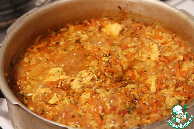 Рассыпчатый и золотистый плов с курицей