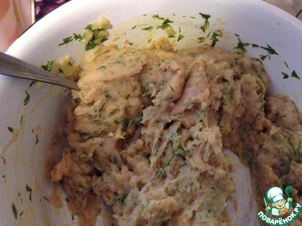 У меня была одна целая грудка и одна половинка, ну, в общем, полторы; кур. грудки режем брусочками, добавляем туда лук и всю смесь (2) + 2 ст. ложки кефира все это перемешиваем и блендером превращаем в фарш.