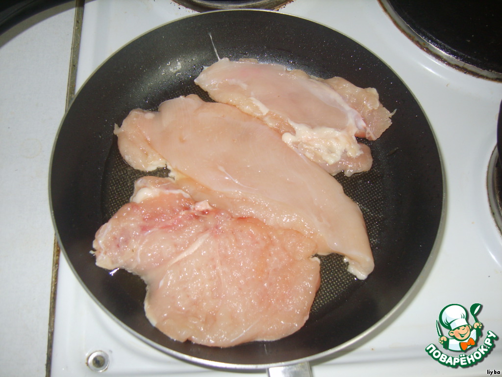 Куриное филе отбить и обжарить с двух сторон (по 2 мин. на сторону).